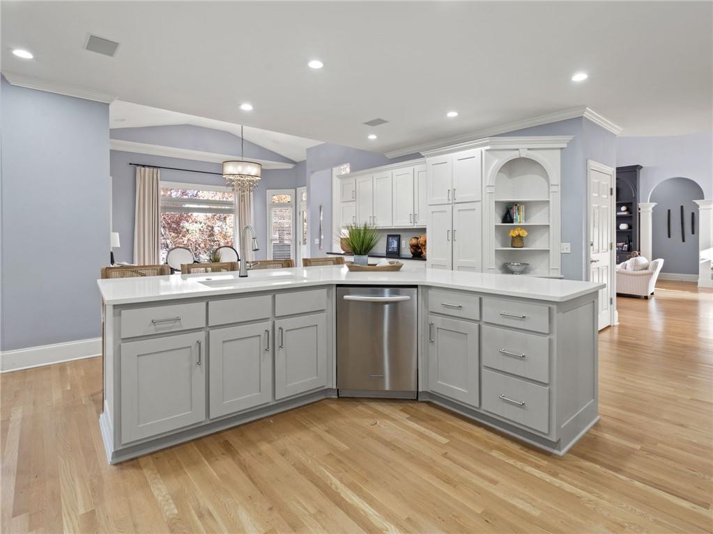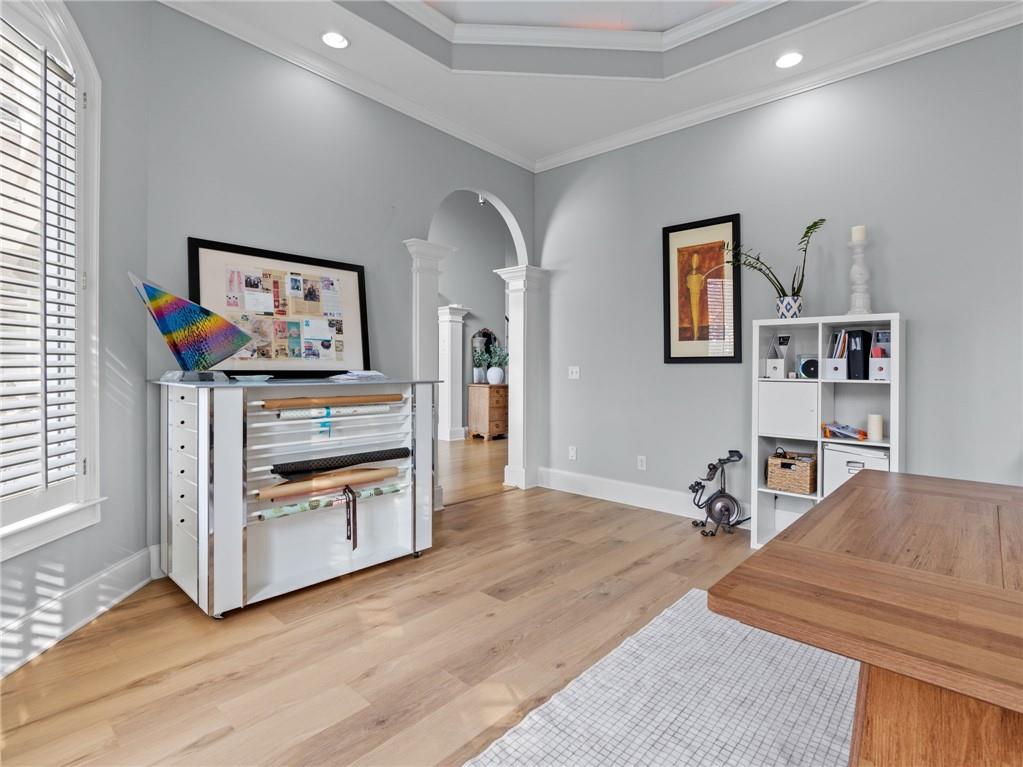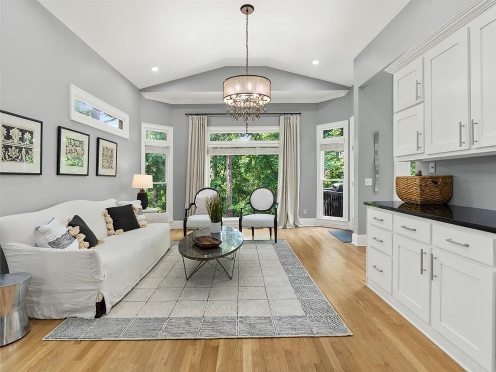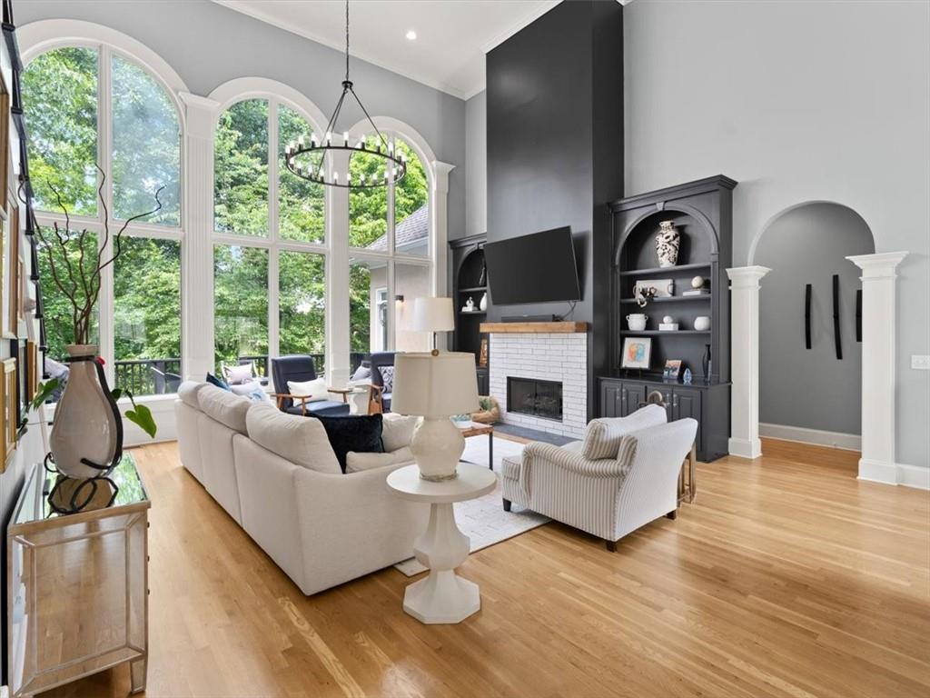 Welcome to this exceptional residence in the highly sought-after Falls at Autry Mill, offering timeless design, thoughtful updates, and a truly move-in-ready experience. Upon entry, the home immediately impresses with a light-filled two-story great room, featuring dramatic floor-to-ceiling windows that create an open, airy atmosphere and showcase the home's architectural scale.