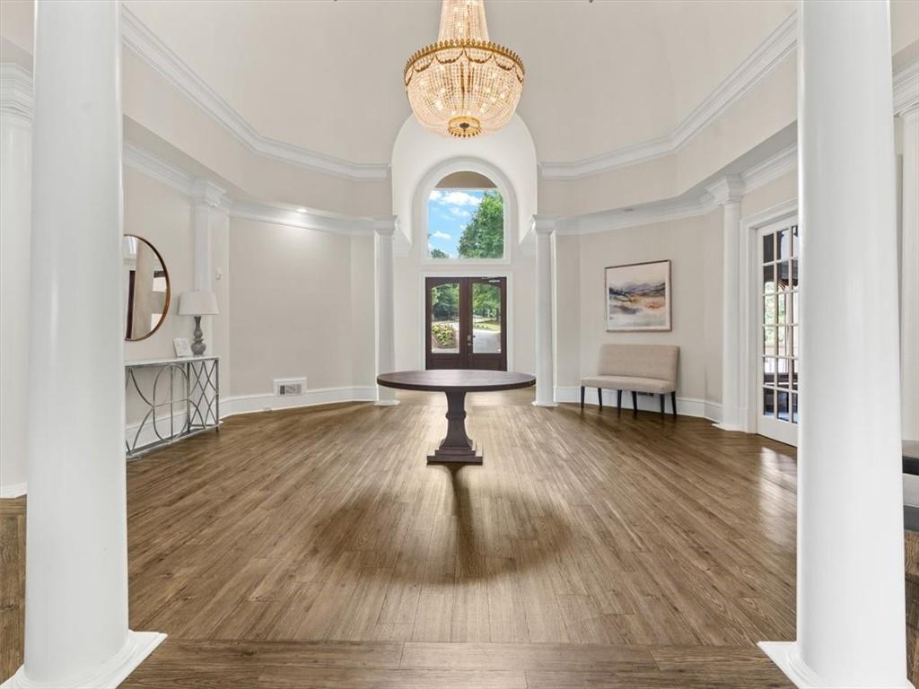 Other Interior Features: Coffered Ceiling(s), Crown Molding, Double Vanity, Dry Bar, Entrance Foyer, Entrance Foyer 2 Story, High Ceilings 10 ft Main, High Speed Internet, Sound System
